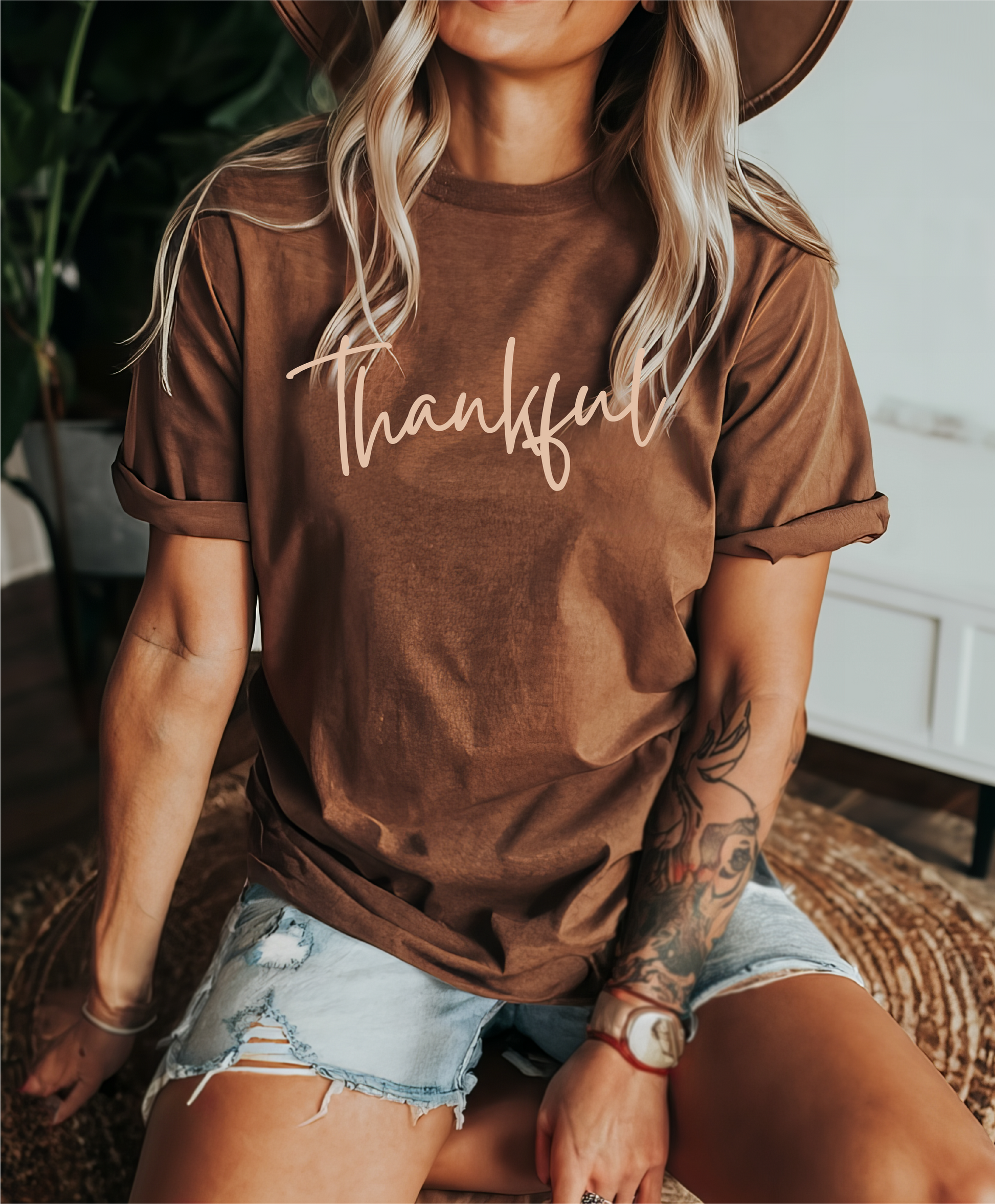 Blonde Ambition Apparel & Designs - Thankful Tee: Heather Brown w/ Tan Font