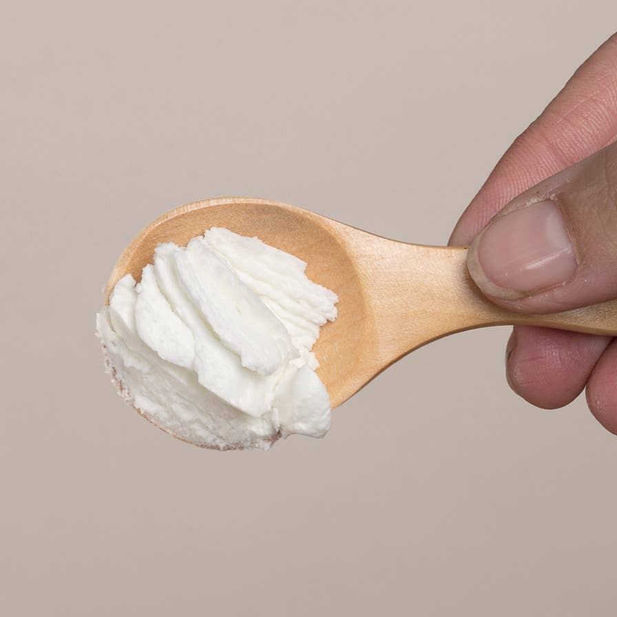 This luxurious combination of essential oils and butter is whipped up to a beautiful light and airy consistency. This body whip will feel light going on and will absorb the quickest right after a shower. Store out of direct sunlight. If oils melt in the jar, they can still be used as is, or simply re-whip them at home like whipped cream.100g
