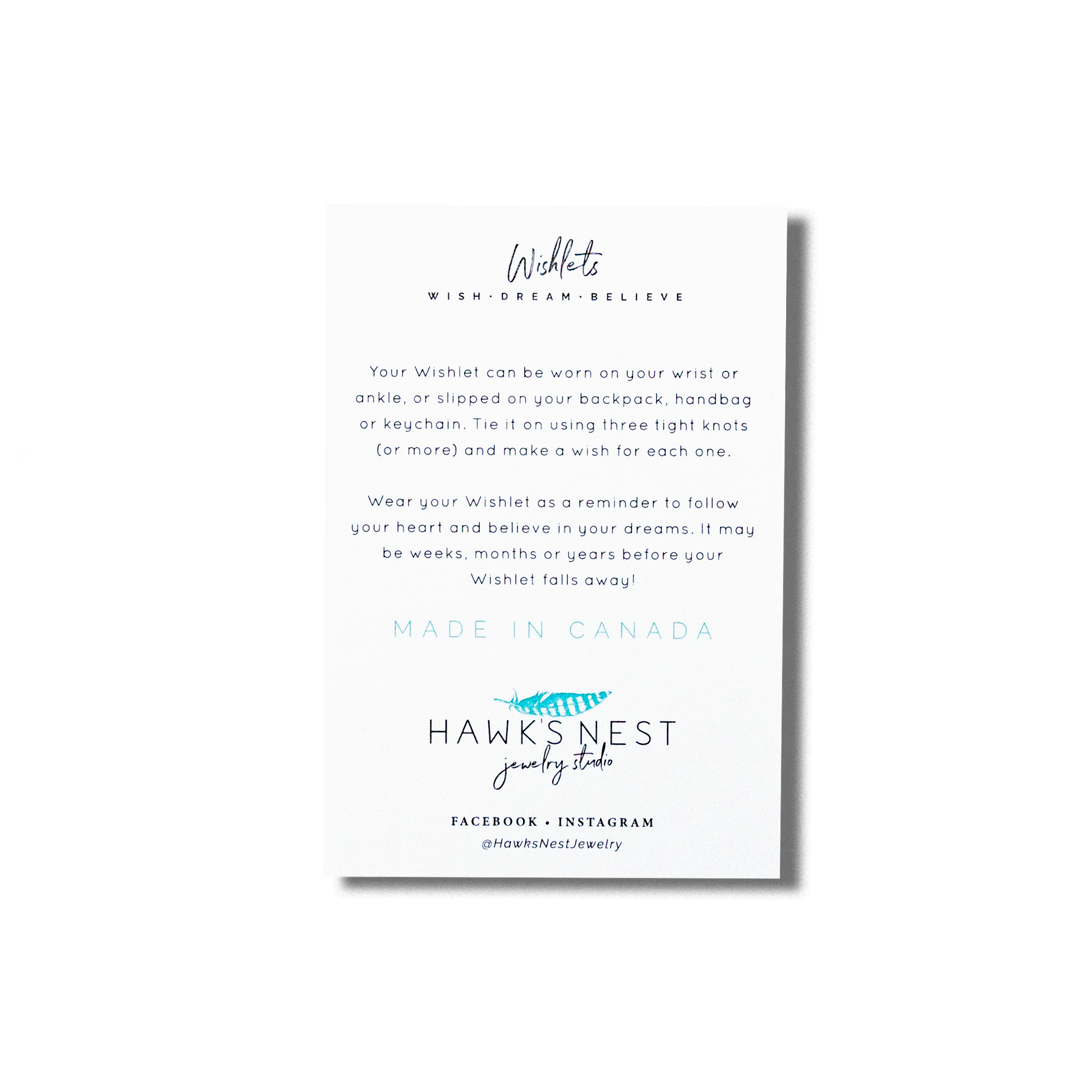 Wear your Wishlet as a reminder to follow your heart and believe in your dreams or share this token of love and friendship with a friend or family member. It may be weeks, months or years before your Wishlet falls away!