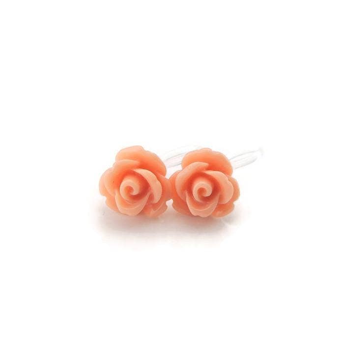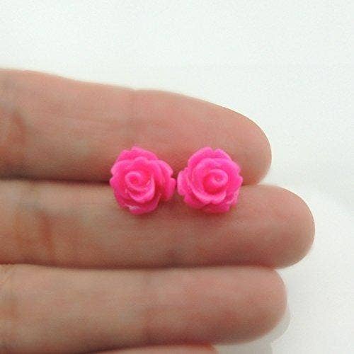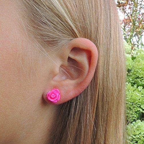 Pretty Smart - Bright Pink Rose Stud Earrings, 9mm: Invisible Clip On